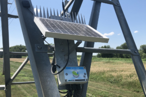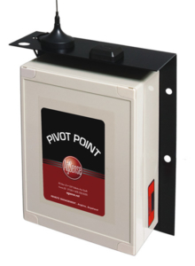 The AgSense remote management unit mounts on the pivot end tower where a GPS receiver reports the system’s position, speed, and direction of travel. The AgSense uses digital cell phone technology to communicate through the Internet and can be configured to send alerts to a cell phone or e-mail address.