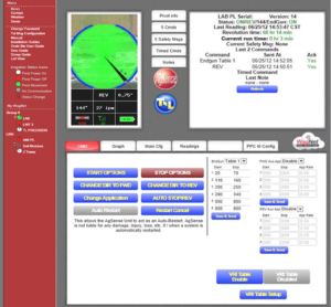 PPCIII’s user friendly control panel shows; set speed versus actual speed, speed sensor operation, the system’s current run time, and relevant GPS data such as latitude and longitude and WAAS fix.