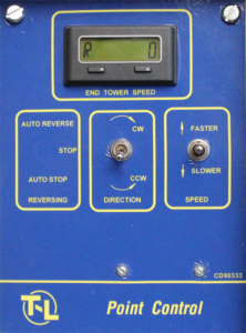 You can control center pivot speed and direction from the pivot point or remote locations other than the end tower with the T-L point control option.