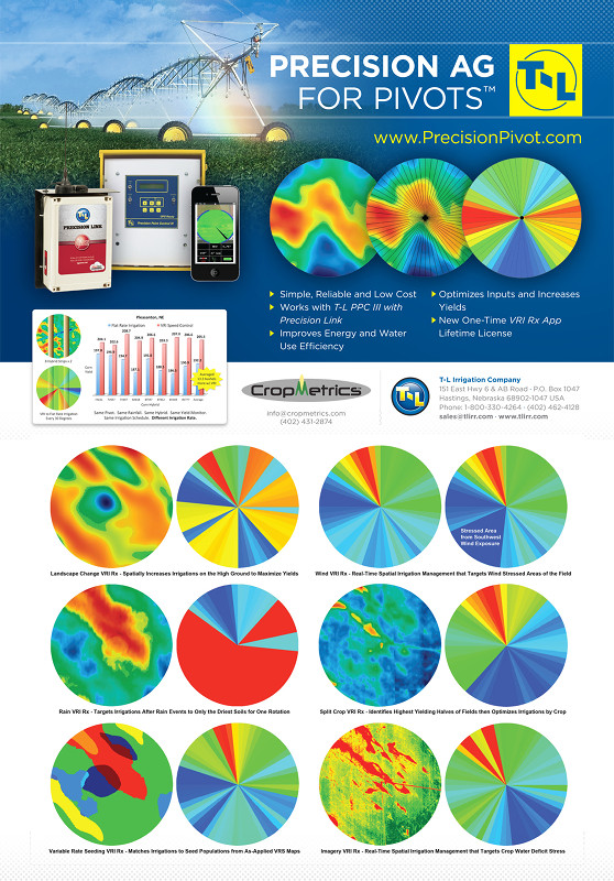 Developed by CropMetrics, the Precision Irrigation Management services provided, when coupled with the Precision Link and the Precision Point III (PPC III) Control Panel from T-L, allows irrigation management with data- driven VRI prescription.