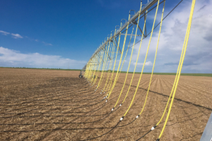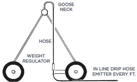 The system consists of in-line drip hoses, in place of nozzles or sprinkler heads, that are dragged by the center pivot or lateral-move system. As the hoses are pulled through the field, emitters deliver an even water pattern across the full length of the pivot or linear sytem.
