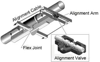 T-L systems maintain alignment through the use of a simple hydraulic spool valve. The alignment system moves the spool valve, metering the required hydraulic fluid flow for each tower maintaining continuous movement and alignment with the end tower. This simple hydrostatic control is vastly superior to the start-stop microswitch design used with single-speed electric motor drives.